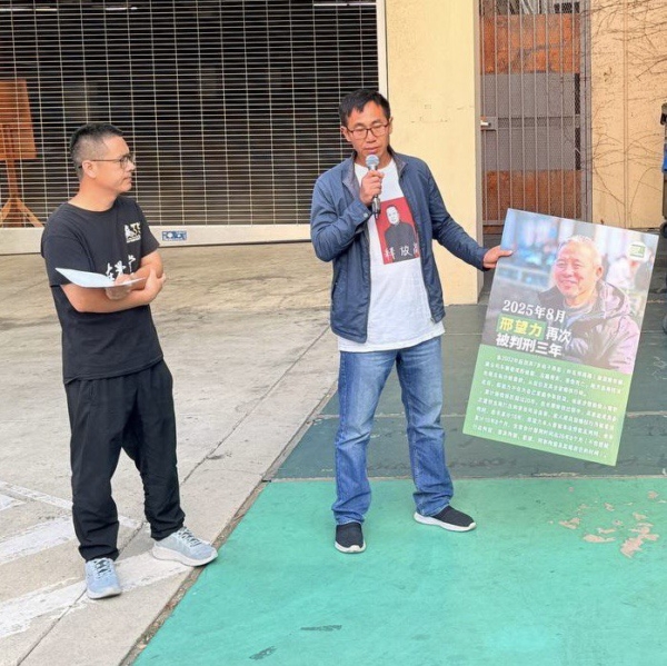 【2025年10月27日訊】(洛杉磯訊)第761次「茉莉花行動」於2025年10月25日下午4時在中共駐洛杉磯總領館前舉行,由中國民主黨洛杉磯委員會、中國民主人權聯盟、《在野黨》雜誌社聯合發起。 十餘名參與者發表公開演講,呼籲釋放邢望力、張盼成等在押良心犯。