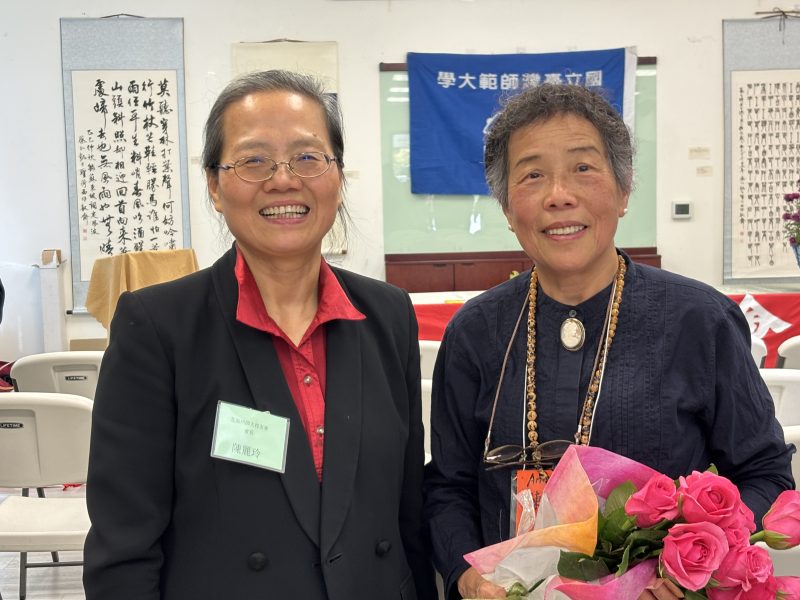 會長陳麗玲(左)與陳惠芳老師(右)合影。(林子晨/大紀元)