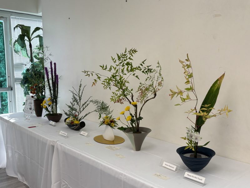 隨後,書法家蔡弘凱老師登台揮毫「春城無處不飛花」,畫家陳惠芳以詩入畫,插花家陳靜修再以花藝詮釋詩意,詩、書、畫、花交融,現場宛如詩畫世界。