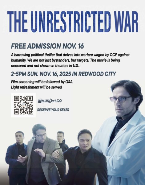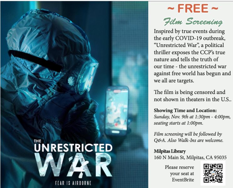 【大紀元訊】揭露疫情背後真相的政治驚悚片《超限戰》(The Unrestricted War)將於11月9日(週日)下午1點30分至4點在Milpitas圖書館舉行免費首映會,並於11月16日(週日)下午2點至5點在紅木城(Redwood City)Red Morton Community Center舉辦加映場。名額有限、訂票從速!
