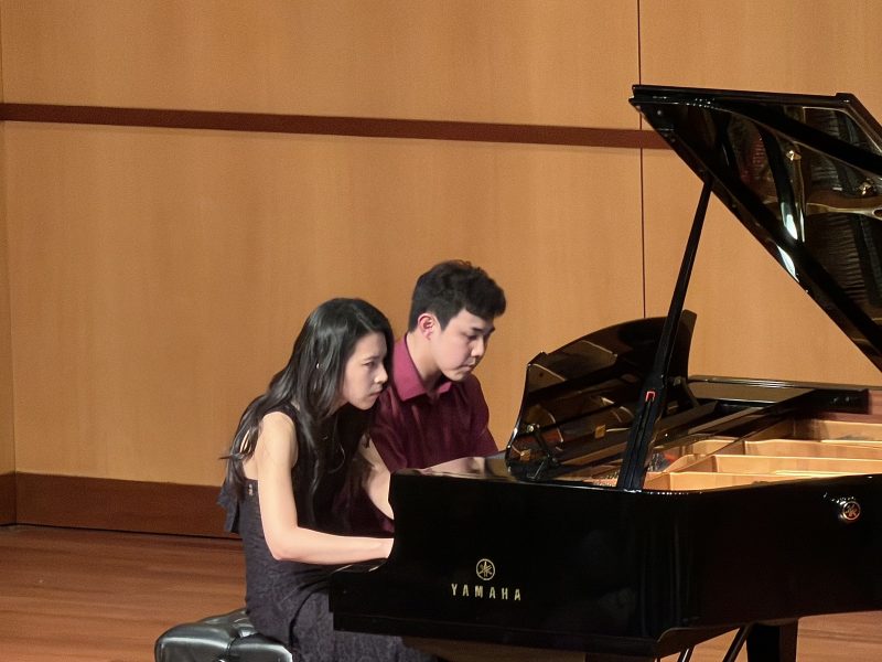 當晚,沈珈嘉與劉傑鑫雙鋼琴演奏柴可夫斯基的《四季》選曲。(薛明珠/大紀元)