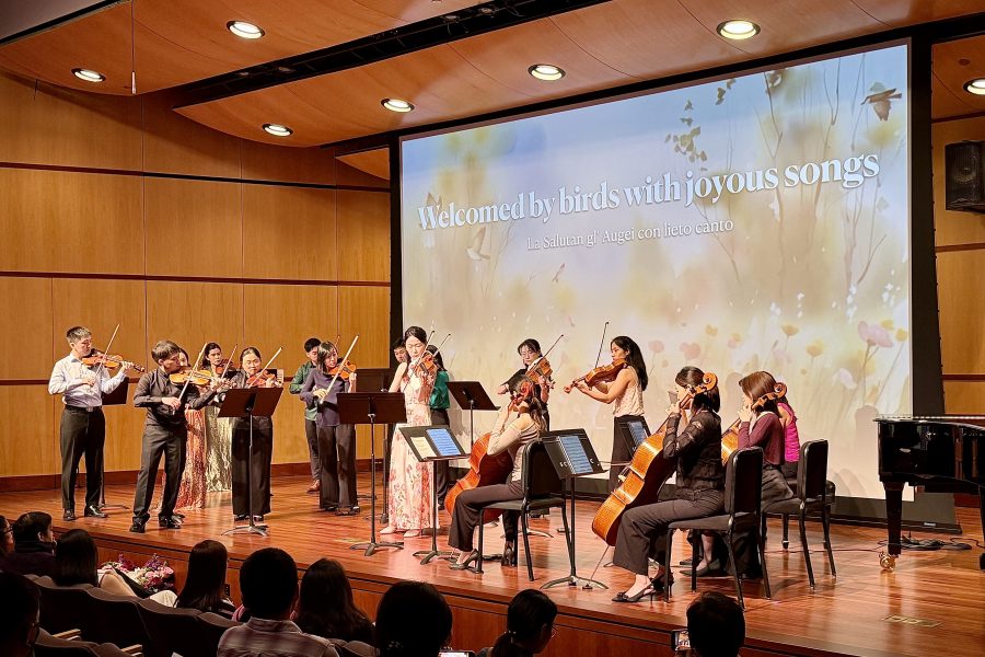 當晚演出同步搭配動畫影像與詩句解說,讓觀眾在視覺與聽覺交融中,更深入體會音樂所描繪的意境與情感。音樂會上,五位小提琴獨奏家與雙鋼琴家輪番登場,演出柴可夫斯基《四季》、貝多芬《春》奏鳴曲與韋瓦第傳世之作《四季》,帶領聽眾穿越不同地域與時代的音樂風景。