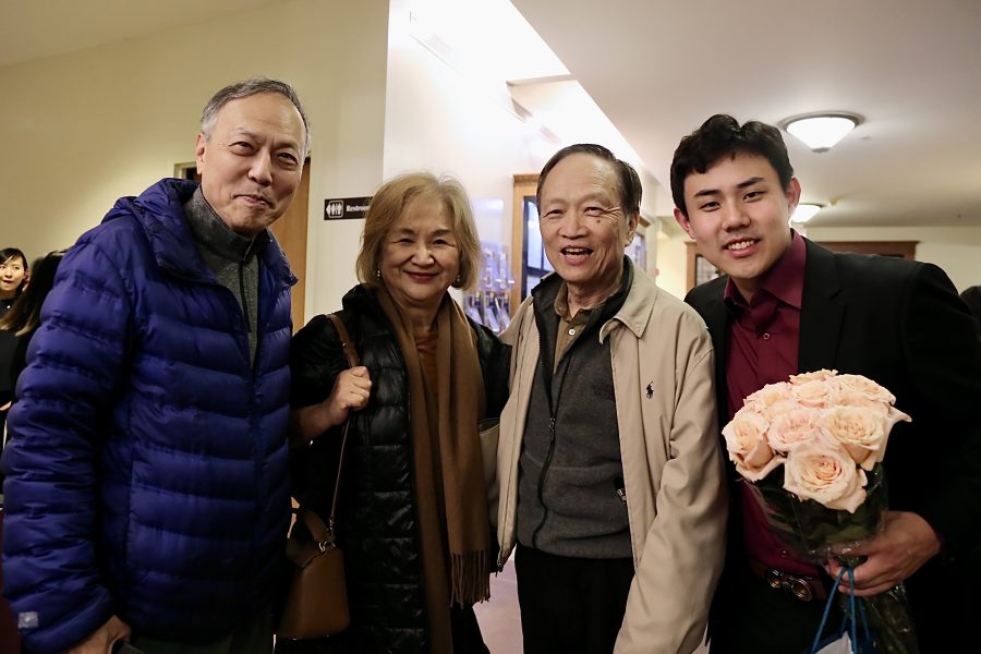 由左至右為:工程師王先生與夫人、小雨點基金會創辦人徐北辰,以及灣區知名音樂教育家劉傑鑫(Eric Liu)。(薛明珠/大紀元)