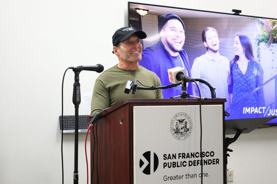 舊金山公辯律師長辦公室「自由項目」共同創辦人史蒂芬‧利布在發佈會上講話。(路小玉 / 大紀元)