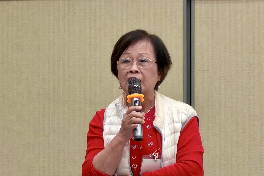 志工團長高玉麗回顧僑教中心從 Sunnyvale 搬遷到新館的發展,她表示,早期舊館不到15名志工即可運作;搬到 Milpitas 後,空間擴大3.5倍,需要更多人力支援,因此才擴編成今日擁有百餘人的志工團。她感謝主任與同仁長期的指導與支持,使志工團能夠「開花結果」,並強調志工彼此如同一家人。