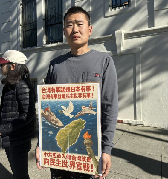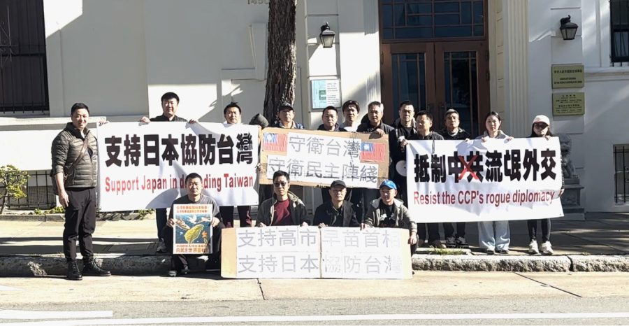 【大紀元記者林若水舊金山報導】 2025年11月22日(週六),中國民主黨部分人士在舊金山中國領事館前舉行集會,公開聲明支持日本首相高市早苗「臺灣有事就是日本有事」的觀點,聲援臺灣民主,反對中共武力威脅,並呼籲全球民主國家共同守護亞太地區和平與自由。