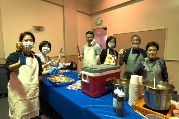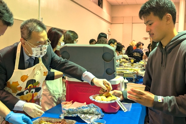 今年因台灣會館重建,餐會首次移至洛僑中心舉行,並改為中午時段。主辦方準備了滷肉飯、金瓜米粉、白菜滷、肉羹湯等多道家鄉料理,讓學生們大呼過癮。田詒鴻董事長更提供四隻火雞,讓台味佳餚與美式感恩節元素交融,不同世代的台灣留學生熱絡交流。