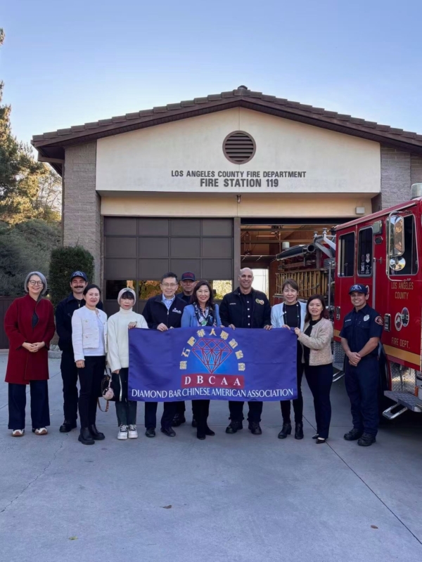 【2025年12月04日訊】鑽石吧市(Diamond Bar)市長鄧嘉猷與鑽石吧華人聯誼協會(DBCAA,簡稱華協)成員,於週二(12月2日)上午拜訪當地警局與三處消防局,以感謝第一線人員為保障治安、救助社區的辛勞付出。