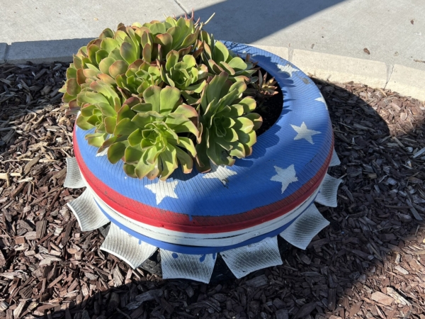 在傅有的車行裡,廢棄的冷媒罐被切割、塑形,化身為風格獨特的裝飾品;報廢的汽車排氣管是他構思中「機器人」的腿;而那些完成使命的廢輪胎,則被他改造成花盆,種上了耐旱的多肉植物,為這間鐵皮屋頂下的修車行增添了難得的綠意。