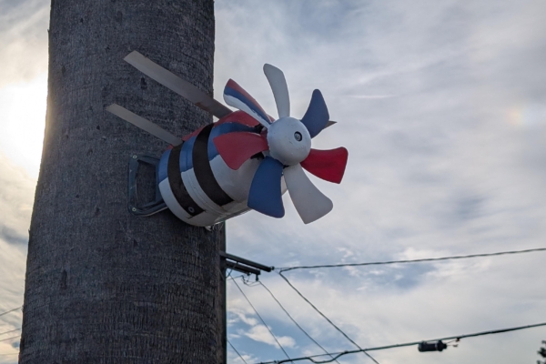 屋頂上的風車,則是傅有拆下風扇,用上紅、藍、白油漆,製成美國國旗風格的傑作。這位從中國東北移居洛杉磯扎根近四十年的老移民,親手打造的各式作品,散落在車行裡的各角落,承載著華人移民的創意、熱情與不懈的傳承精神。