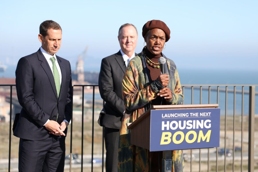 她說:「在舊金山,加州迎來了新的住房熱潮。⋯⋯這正是我們建設城市所需要的。⋯⋯我們的城市需要人,我們需要各種各樣的人。」