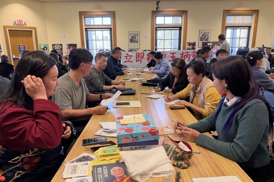 眾人正在寫聖誕賀卡給中國良心犯。(薛明珠/大紀元)