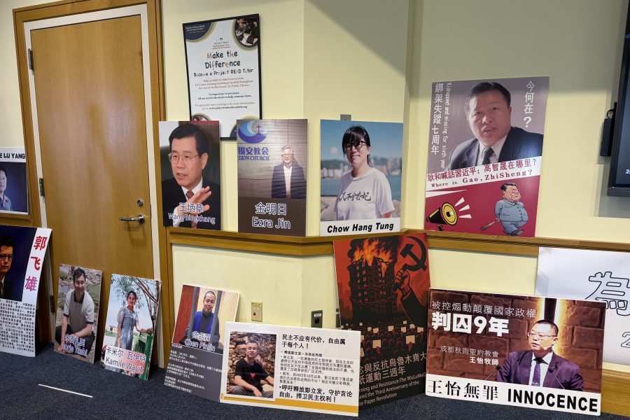 活動現場擺放眾多遭中共迫害的維權人士照片。(薛明珠/大紀元)
