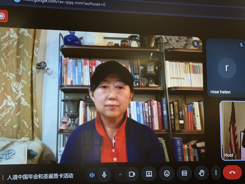 今年遭大抓捕的锡安教會牧師金明日的妻子劉安娜,線上介紹教會概況。锡安教會,自2007年創立後快速成長,但今年牧師與20多名同工,卻遭中共集體拘押。她表示,寄出的卡片或許未必都能到達,但行動本身意義深遠。她相信一切先做在上帝面前,至於效果如何,是其次;在質疑與艱難面前,更要堅定不氣餒,持續行善。