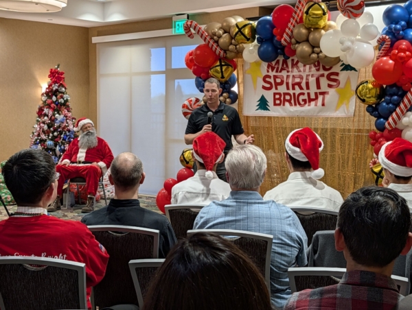 上週日(7日),洛杉磯縣鑽石吧市「點亮心靈」(Making Spirits Bright,MSB)組織在鑽石吧市假期旅館酒店舉辦玩具捐贈和遞送慈善活動,以支持莫哈韋沙漠的歐文堡國家訓練中心(NTC)的將士。期間,駐軍指揮官查德維克(Steven Chadwick)上校介紹了該基地陸軍士兵接受的嚴格訓練及家庭生活之艱辛。