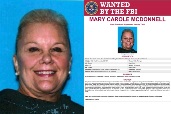 【2025年12月10日訊】(記者姜琳達綜合報導)美國聯邦調查局(FBI)正在通緝74歲的瑪麗‧卡羅爾‧麥克唐納(Mary Carole McDonnell),她涉嫌冒充美國航空航天先驅企業家族的繼承人,在加州詐騙近3,000萬美元。