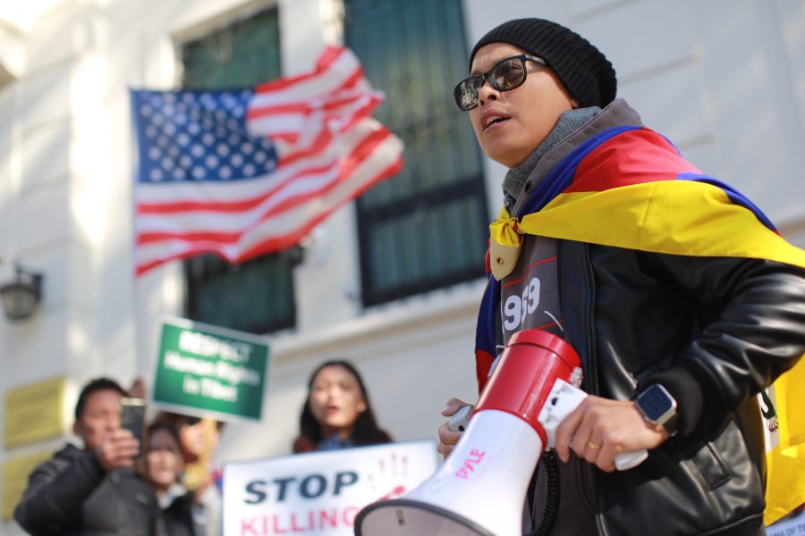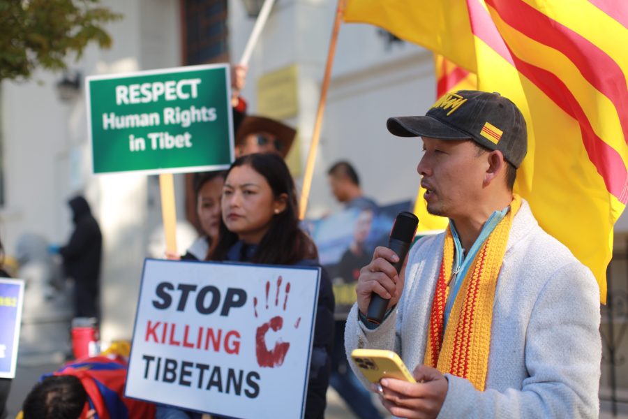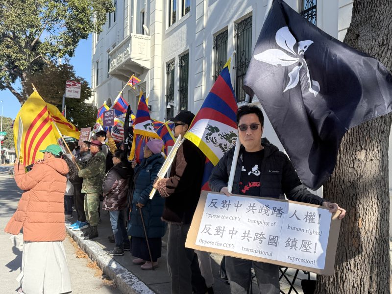 12 月 10 日世界人權日,多個人權團體以及來自中國大陸、香港、西藏、越南、菲律賓及美國本地的民眾,在舊金山中共領事館前舉行集會,抗議中共對人權的打壓。(關永傑提供)