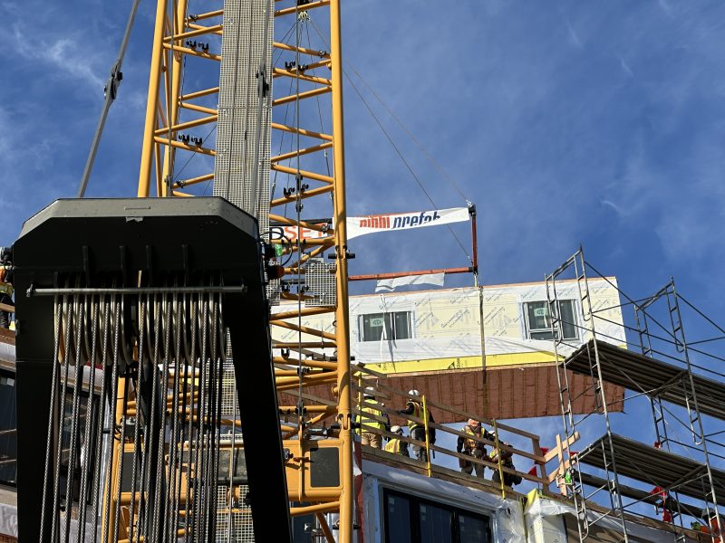 總承包商Nibbi Brothers說明,本案113個模組自12月5日開始吊裝,預計11個班次、約兩週完成全部安置,速度遠比傳統施工快。工程代表向本報記者講解,可控工廠環境讓品質更穩定,場外預製與現場組裝能將施工期縮短約30%,本案從開工到完工僅需約18個月。
