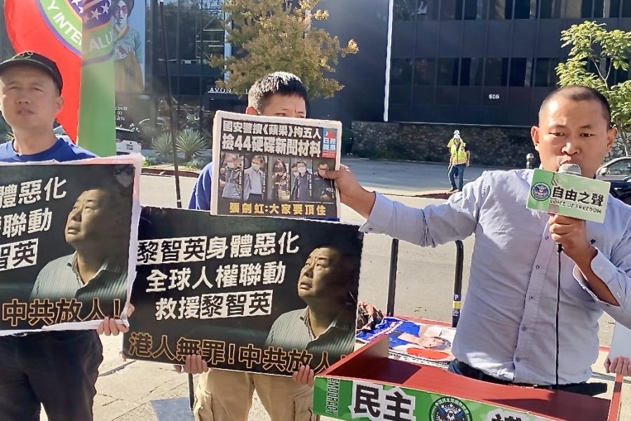 【大紀元記者薛明珠報導】中國民主黨國際聯盟於 12 月 16 日(週二)在洛杉磯中領館簽證大廳外舉行抗議集會,譴責港共當局重判黎智英,並呼籲國際社會持續關注其案件,要求立即將其無罪釋放。