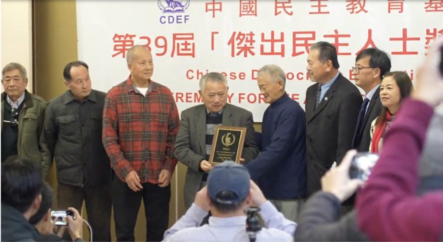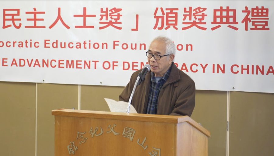前民主人士獲獎者赵常青發言。(林若水/大紀元)