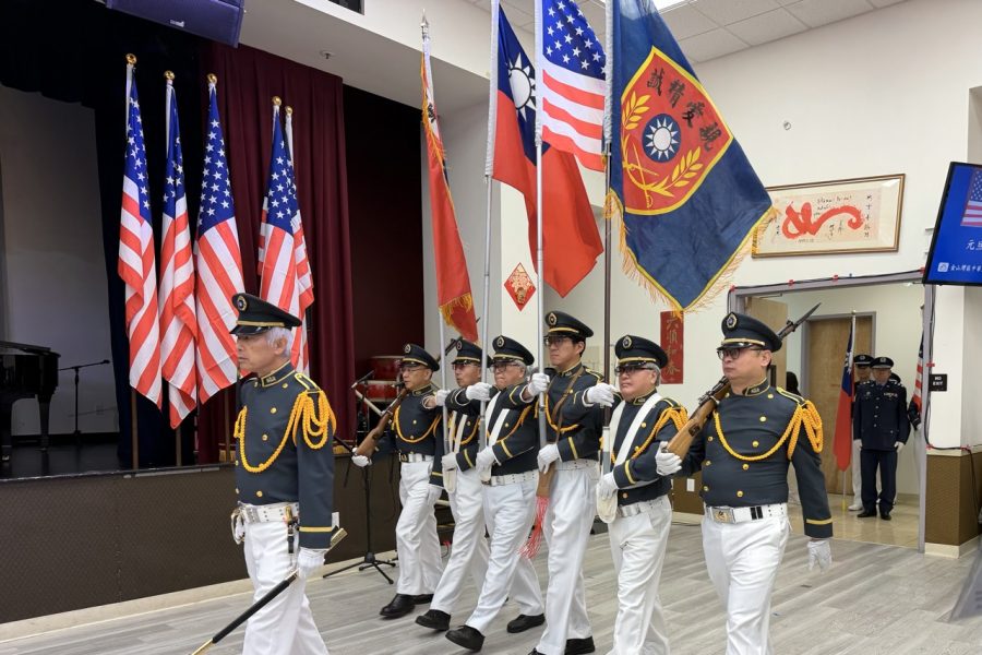 當天,雖然天氣又冷又下雨,現場仍人潮滿滿、氣氛高昂。上午 10 點 10 分,典禮正式揭開序幕,在瑞鼓迎春表演後,金山灣區國慶委員會主委林秀春、駐舊金山辦事處處長伍志翔,以及僑教中心主任莊雅淑依序就位,升旗儀式在室內隆重舉行。