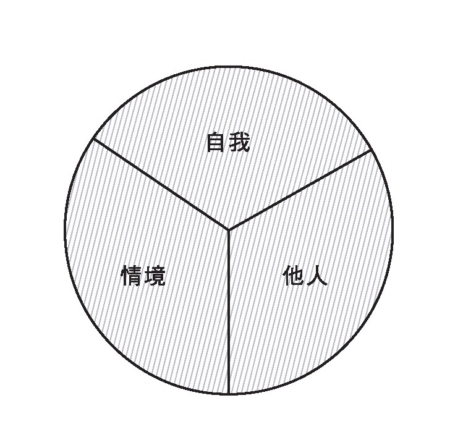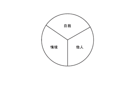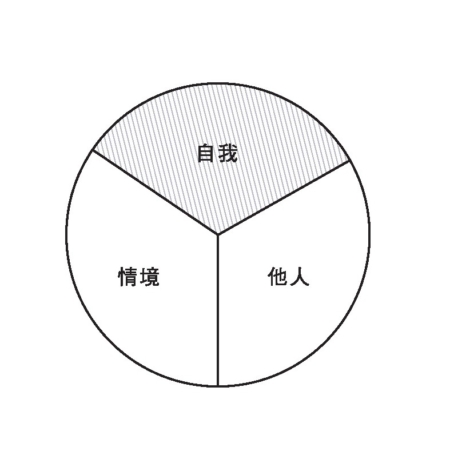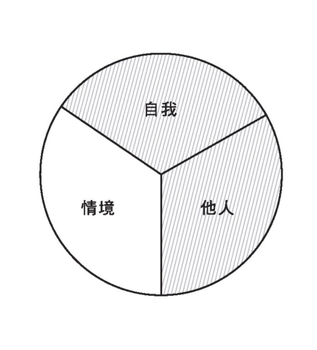 當我們感覺到焦慮、不安或害怕時,可能會有意識或下意識地不想面對,認為自己既處理不了所處的情境,同時也顧不了自己和對方的感受或需要(如圖塗上陰影的「自我」、「他人」、「情境」)。