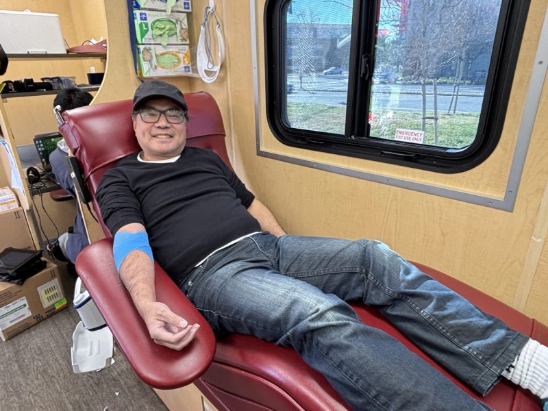 Fremont市議員邵陽博士捐血。(林子晨/大紀元)