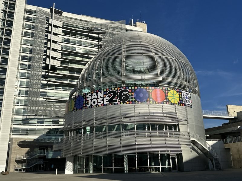 根據市長辦公室發布的新聞採訪通知,位於聖荷西市政廳核心位置的「珍妮特・葛雷・海耶斯圓形大廳」(Janet Gray Hayes Rotunda)將進行臨時外觀改造。這座高約110英尺、獨立式的玻璃圓形建築,將加裝大型乙烯基包膜,以體育主題視覺呈現,呼應即將於2026年登場的超級盃及其他國際級體育賽事。