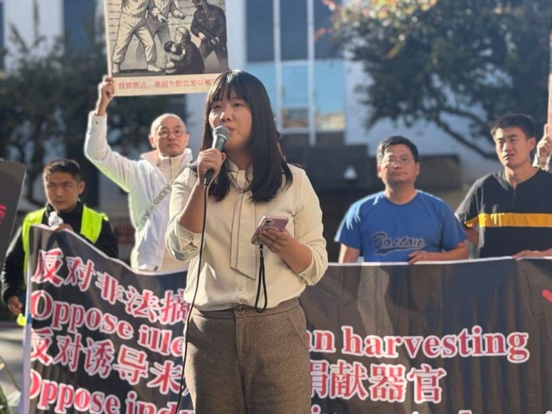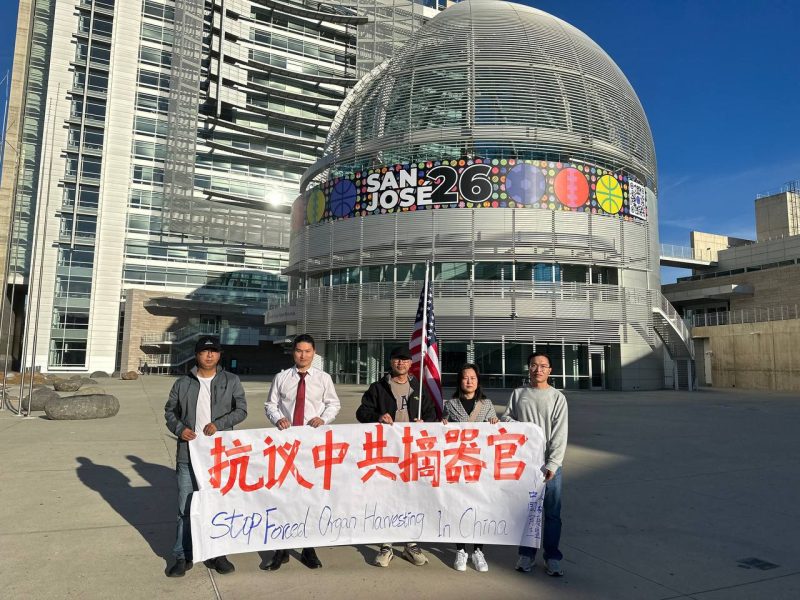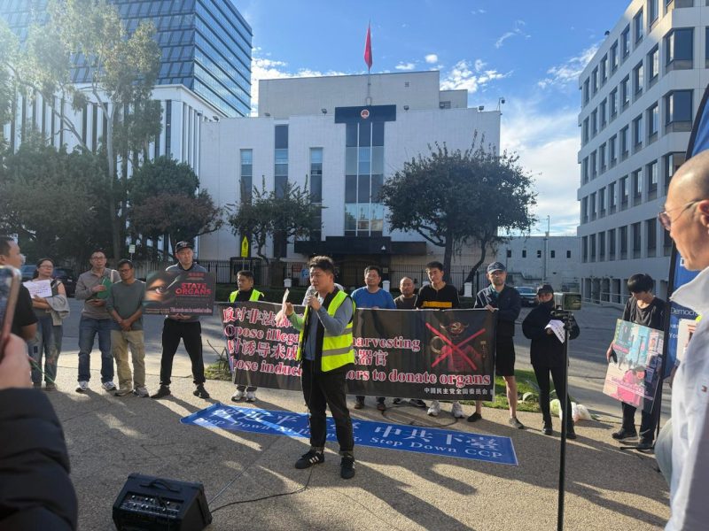 來自中國民主黨及多個公民團體的成員、家長與人權活動人士集結於此,以「守護孩子生命·追問校園真相」為主題,抗議中共長期存在、且愈發指向未成年人群體的系統性活體摘取器官反人類罪行。