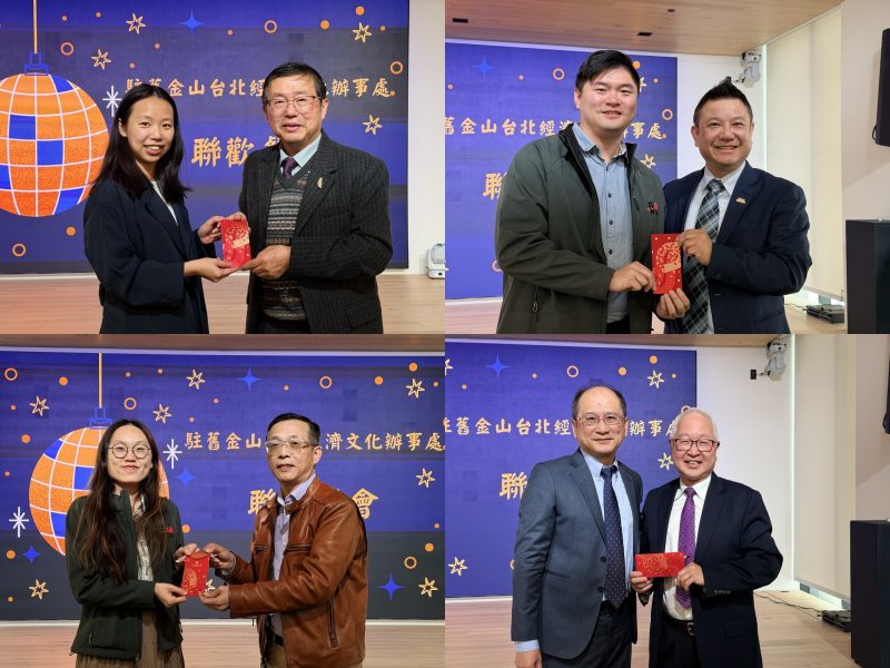 伍志翔致詞表示,三位同仁在駐處服務多年,現階段奉調回臺承擔新任務,另有兩位新同仁加入團隊,特別藉新春時節向大家介紹,也提前向僑界拜年。他強調,灣區僑界活力十足、熱情滿滿,駐處團隊將持續在既有基礎上精進服務,除推動臺美經貿與政務交流外,也將全力服務北灣、南灣,以及猶他州與內華達州的僑胞與民眾。