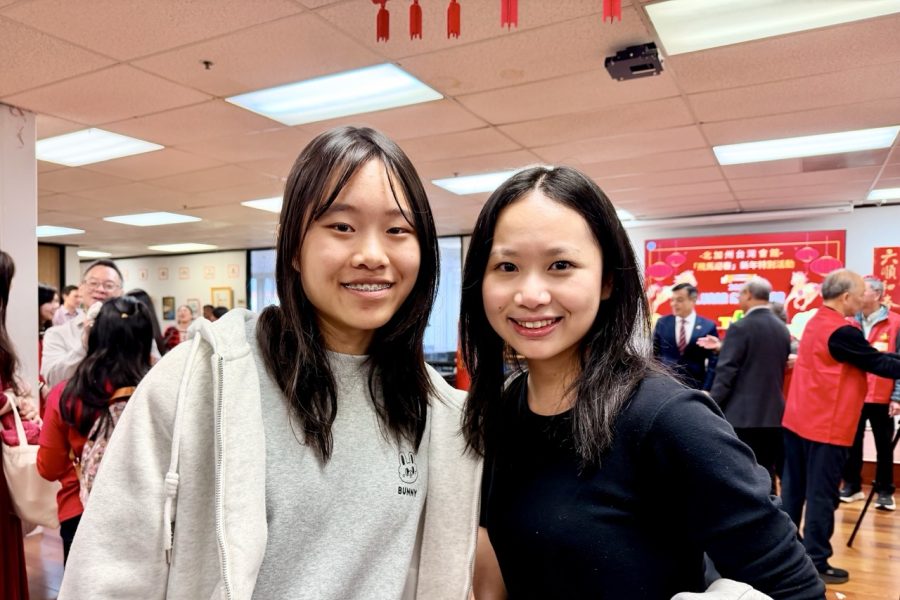 Annie(右)與同學一起擔任活動志工。(薛明珠/大紀元)