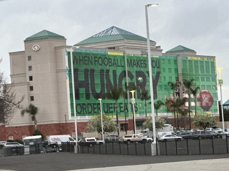 李維斯球場附近的Hilton Hotel也被專門裝飾。(林子晨/大紀元)