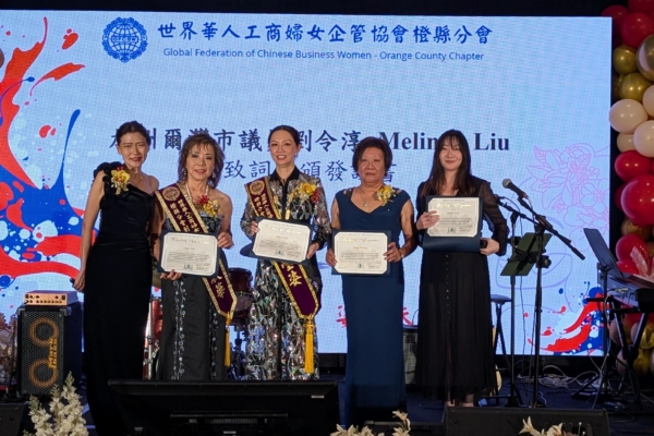 中華民國駐洛杉磯台北經濟文化辦事處處長紀欽耀表示,世華長期致力於凝聚全球華商女力,積極推動公益慈善與經濟交流,更是提升台灣國際能見度的重要平台。他高度肯定橙縣分會在創會會長張淑華的帶領下,僅用兩年半時間便奠定穩固基礎,成果斐然;期許新任會長林瑩姿能持續拓展會務、讓世界看見台灣的溫暖與影響力;並頒贈創會會長張淑華感謝狀、現任會長林瑩姿賀狀。