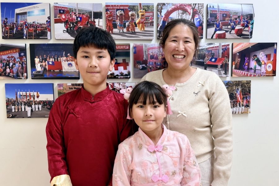 黃駿華與媽媽及妹妹合影留念,妹妹也參加比賽並榮獲幼兒組佳作獎。(薛明珠/大紀元)