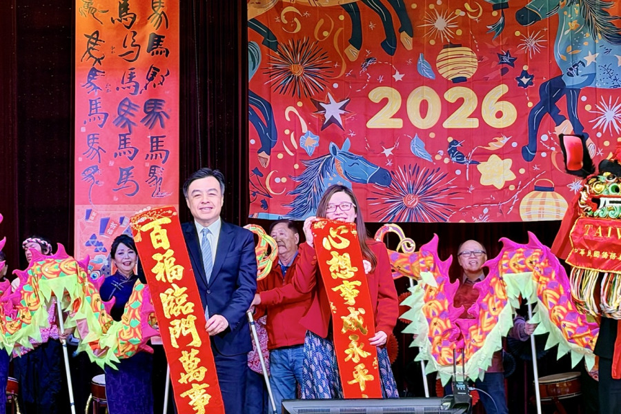 舊金山臺灣辦事處處長伍志翔致詞表示,此次團拜猶如灣區「最強臺灣隊」的大集結。半年來參與僑界多項活動,深刻感受到灣區僑胞的熱情與行動力,也看到各界在主流社會中積極發聲與貢獻。他指出,在國際局勢快速變動下,臺灣仍於半導體、人工智慧及全球供應鏈中占據關鍵地位,離不開海外僑胞長期的努力與支持,讓世界看見臺灣並爭取更多友誼與合作機會;並祝福中華民國國運昌隆,大家馬年行大運、萬事順利。