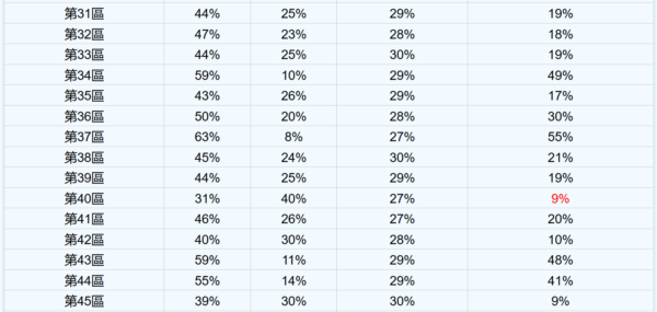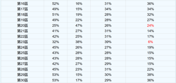 重劃選區後選民黨派比例表(按2026年1月初的註冊選民數)