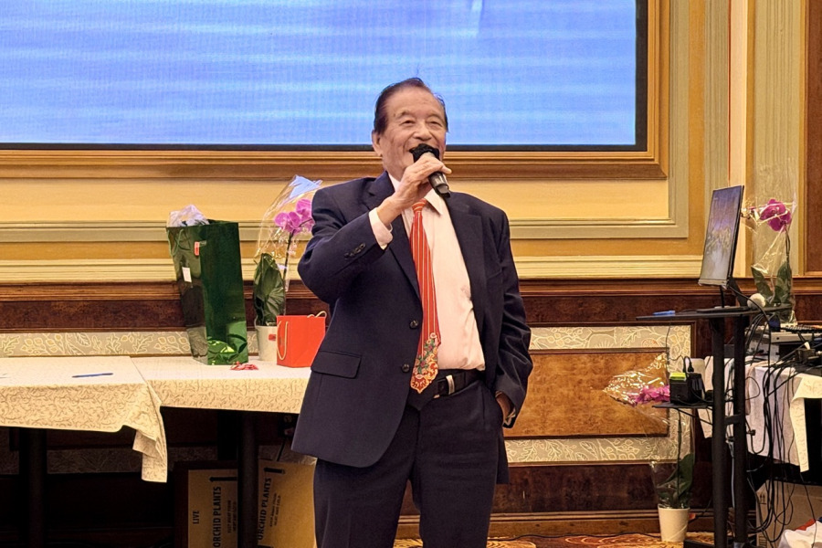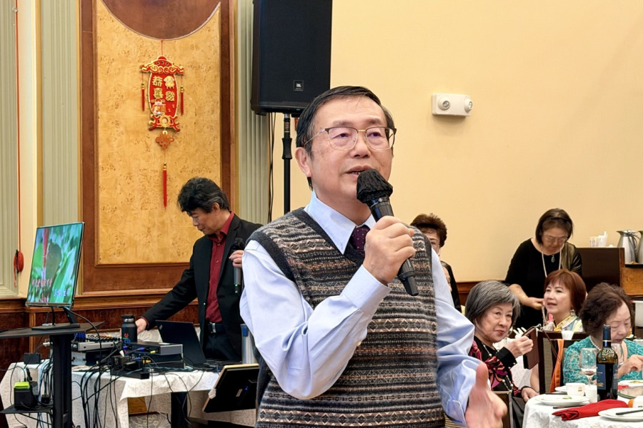 滿任會長陳溢茂在年會上致詞。(薛明珠/大紀元)