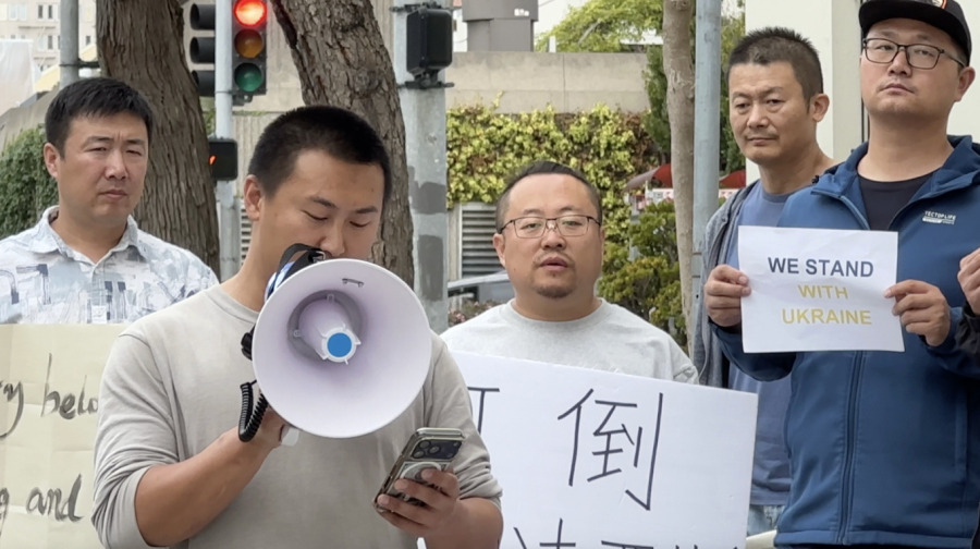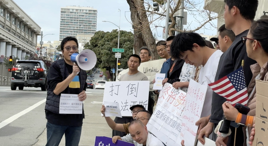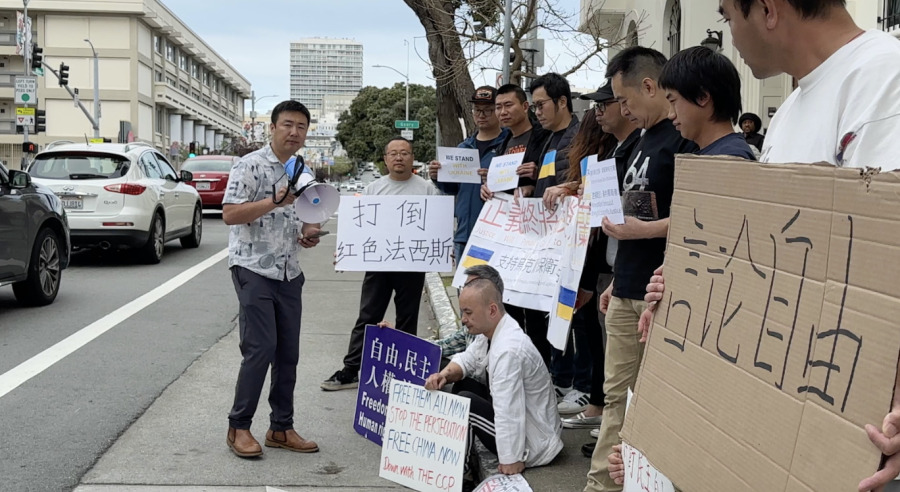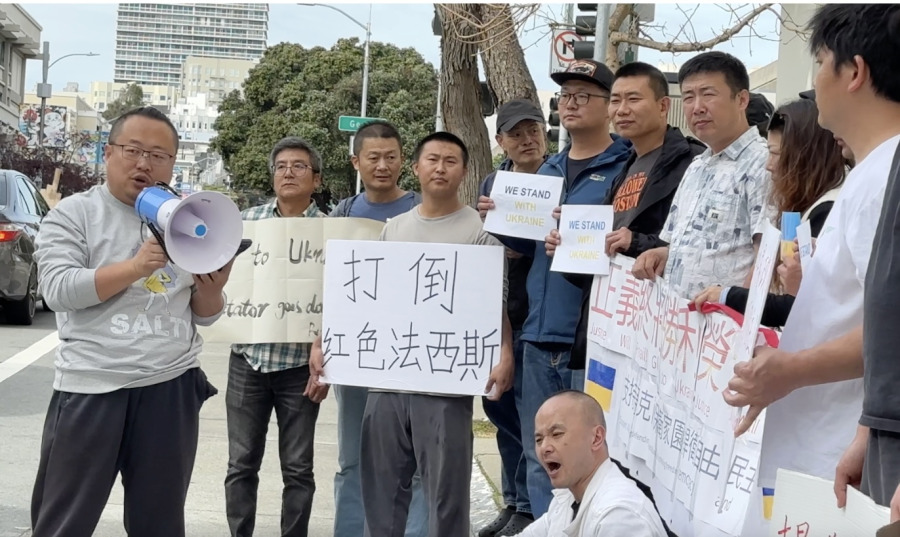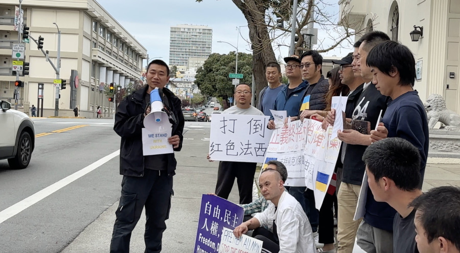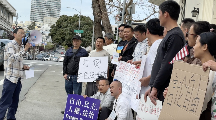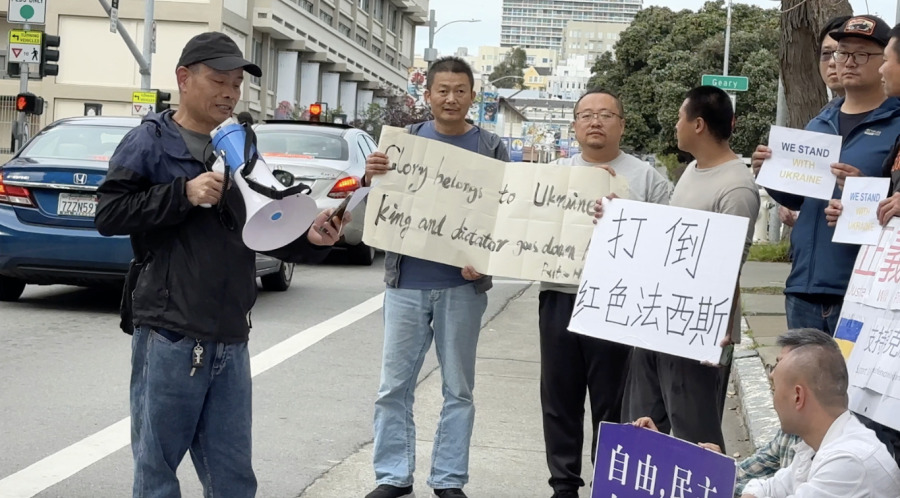 【大紀元記者林若水舊金山報導】二〇二六年二月二十八日(週六)下午,由中國民主黨舊金山黨部發起的「聲援烏克蘭抗擊俄羅斯入侵四周年」集會,在舊金山中共領事館前舉行。