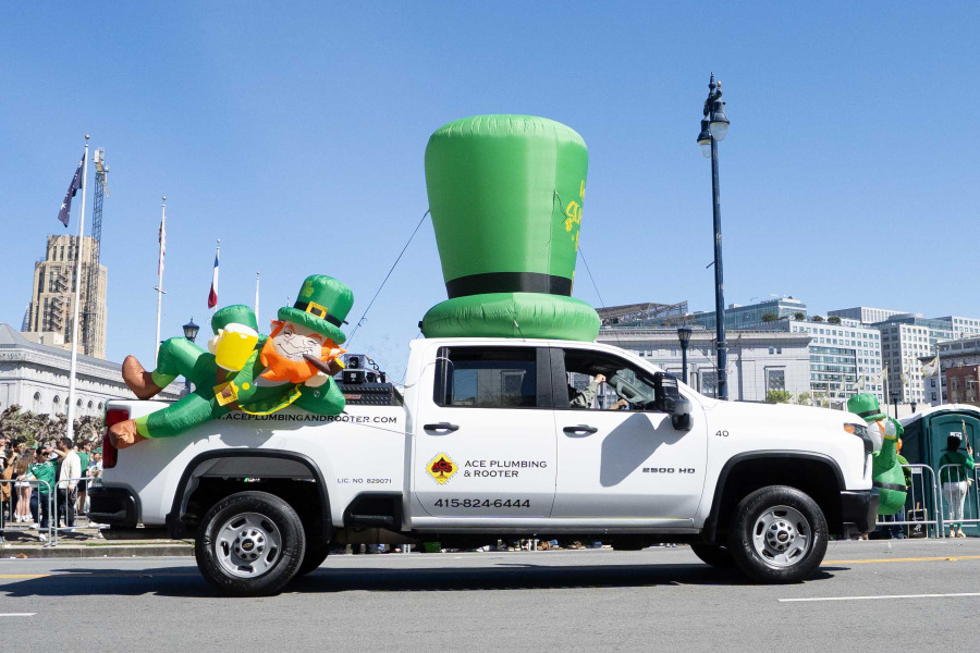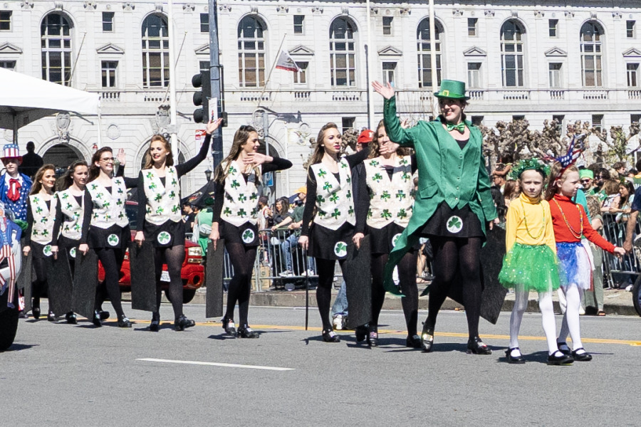 遊行於上午11點30分開始,從第二街和市場街(2nd St. & Market St.)交匯處,行進至市政中心廣場(Civic Center Plaza)。隊伍包括:花車、行進樂隊、風笛樂隊、愛爾蘭舞蹈團體、文教團體、青年團體、民選官員和社區領袖,滿目綠色、五彩泡泡、歡聲笑語與舞樂交織,吸引數千灣區及週邊地區的觀眾。
