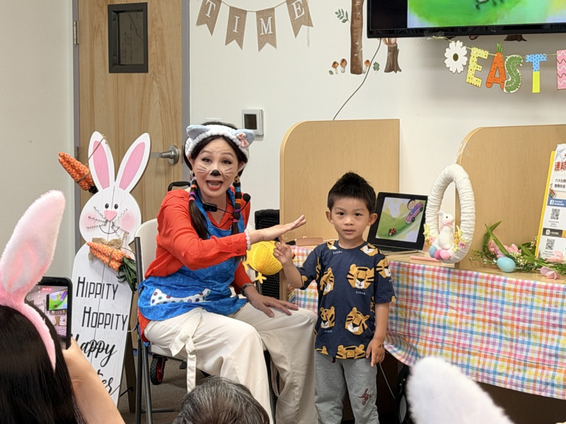 當天故事主題為《我不要當小兔子了!》,特別邀請深受孩童喜愛的李娜亞「貓咪老師」帶領,以生動方式講述故事,帶領孩子進入豐富的想像世界,為活動增添亮點。此外,現場還安排唱跳互動等多元內容,讓親子共同參與。